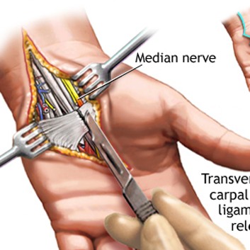 수술적으로 횡수근 인대를 절개하여 손목터널증후군의 완치를 기대할 수 있지만 재발률이 높으며 이 후에는 치료가 어려워집니다. 내시경 혹은 최소 절개 미세수술 등의 수술법으로 횡수근 인대 절개 후 손목터널증후군의 재발률을 낮출 수 있습니다.